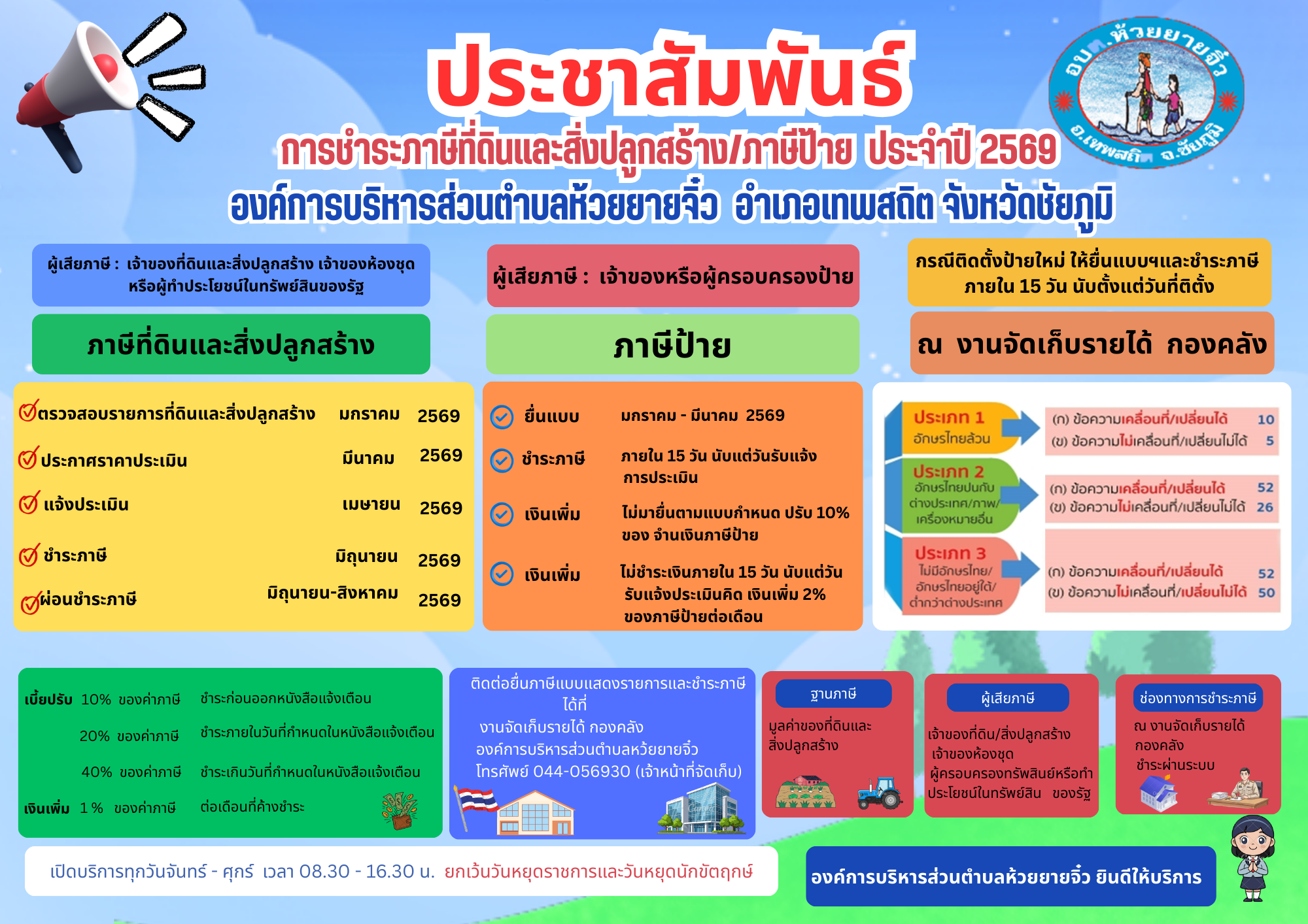 ประชาสัมพันธ์ เรื่องการชำระภาษีที่ดินและสิ่งปลูกสร้าง และภาษีป้าย ประจำปี 2569 |